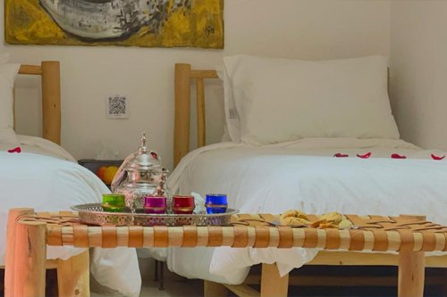 Le riad Pourpre Médina est une maison d’hôtes élégante et intimiste grâce à son architecture aux lignes épurées, sa décoration raffinée et subtilement marocaine. Ce riad vous plongera dès votre arrivée dans l’atmosphère envoûtante de Marrakech et vous offrira un cadre de tranquillité pour vous reposer après la découverte de la médina. Il compte 6 suites offrant tout le confort essentiel pour le bon déroulement de votre séjour et des chambres communicantes sont également disponibles. Riad Pourpre Medina se trouve non loin des sites touristiques prisés, dont Jemaa el-Fnaa, Almoravid Koubba, Ben Youssef Mosque et Musée de Marrakech sont Accessibles en quelques minutes de marche. Pour finir, Almoravid Koubba, Ben Youssef Mosque et Musée de Marrakech sont à 10 minutes à pied. Un petit déjeuner bien garni vous sera offert tous les matins lors de votre séjour. Vous pourrez vous rafraîchir dans le petit bassin et profiter de la terrasse solarium. Nous pouvons vous organiser votre transfert de l’aéroport, réserver une table au restaurant ou organiser vos excursions.